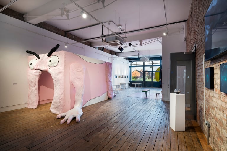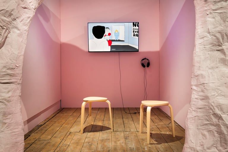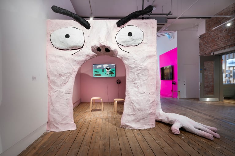 This untitled installation consisted of an animated short film screened within a large sculpture of the film's protagonist. Viewers were invited to walk through the screaming mouth, to watch the film within the body.