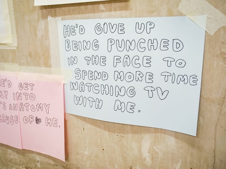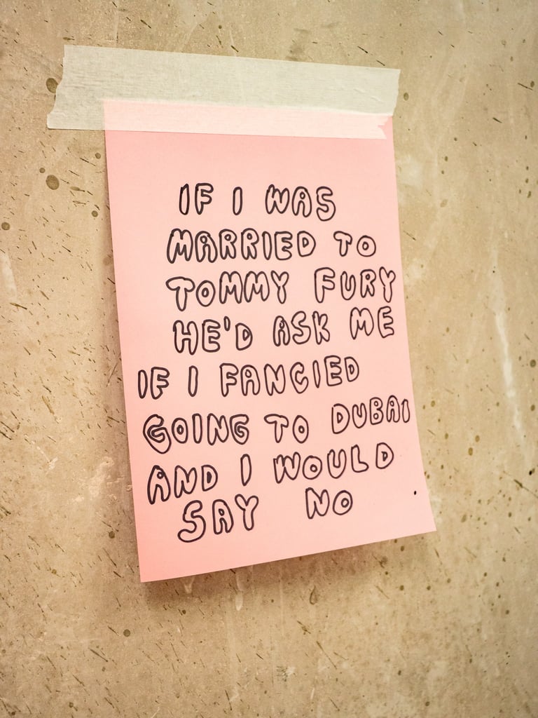 IF I WAS MARRIED TO TOMMY FURY was a solo exhibition at Hamilton Vault in Birkenhead, Merseyside. It was an installation of text, drawing, and sculpture that explored an alternate universe in which I'm married to boxer and Love Island contestant Tommy Fury.